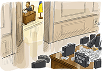 | In den großen Korruptionsskandal um den staatlichen Energiekonzern Enerhoatom sind enge Vertraute von Präsident Selenskyj verwickelt. | |